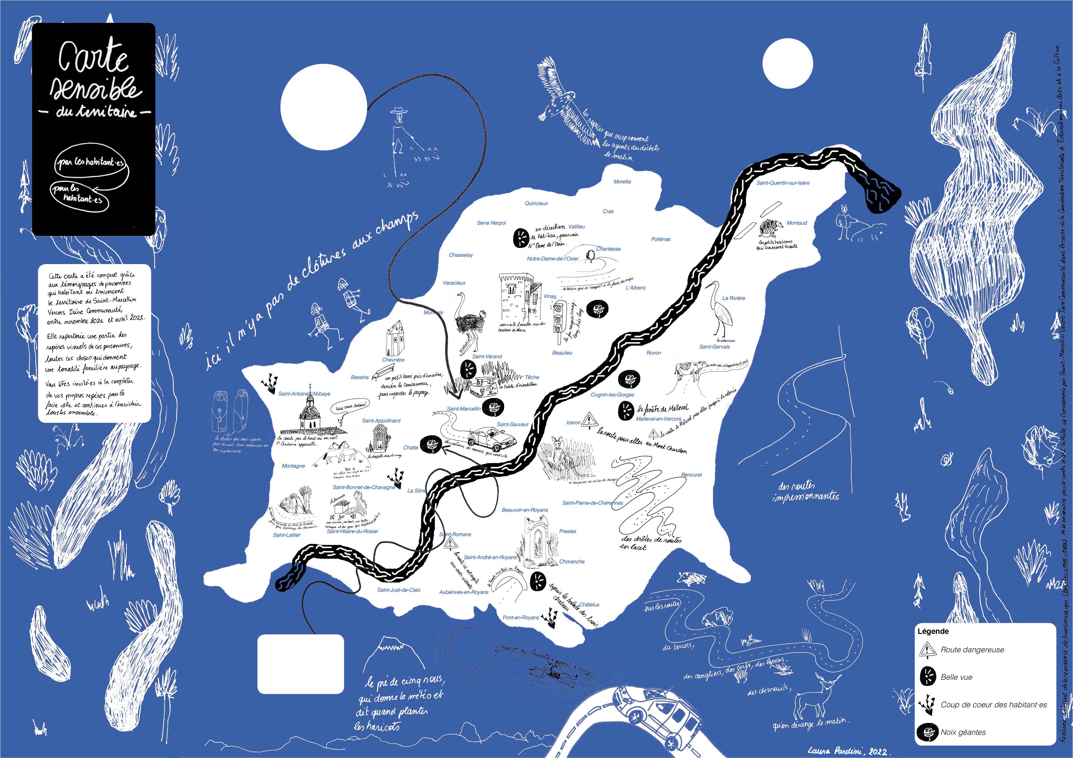 Le résultat de cette enquête est un livre analysant l’ensemble du matériel collecté, accompagné d’une carte citant les anecdotes des habitants sur leur territoire. Le livre a été conçu par Camille Chatelaine, la carte imprimée à