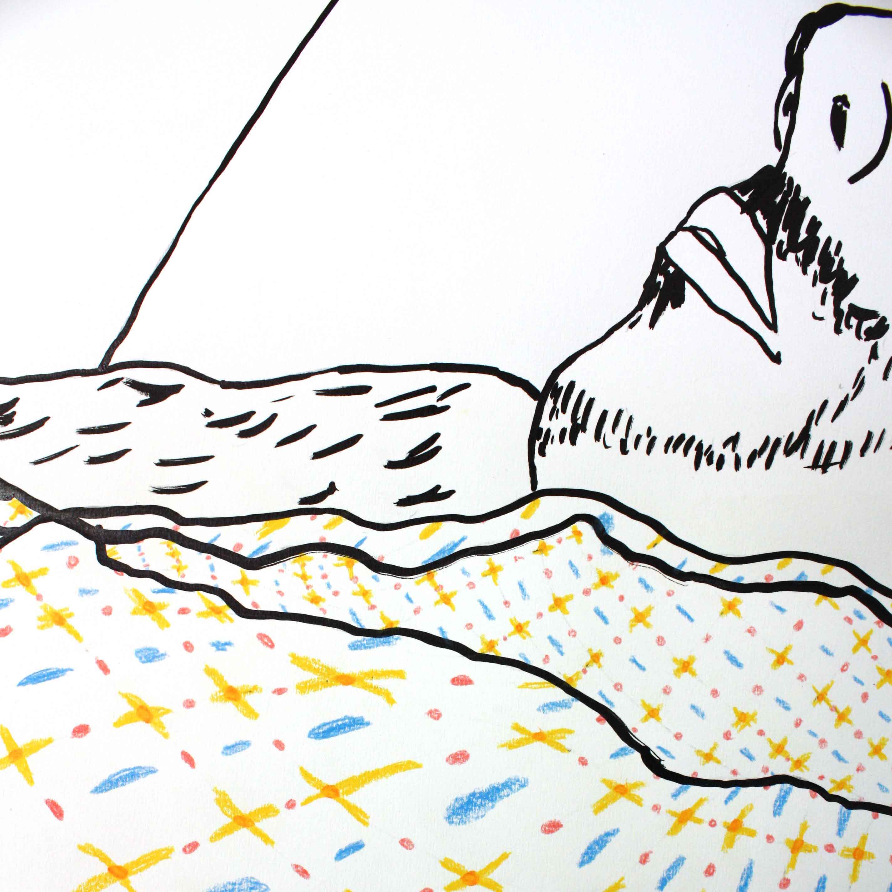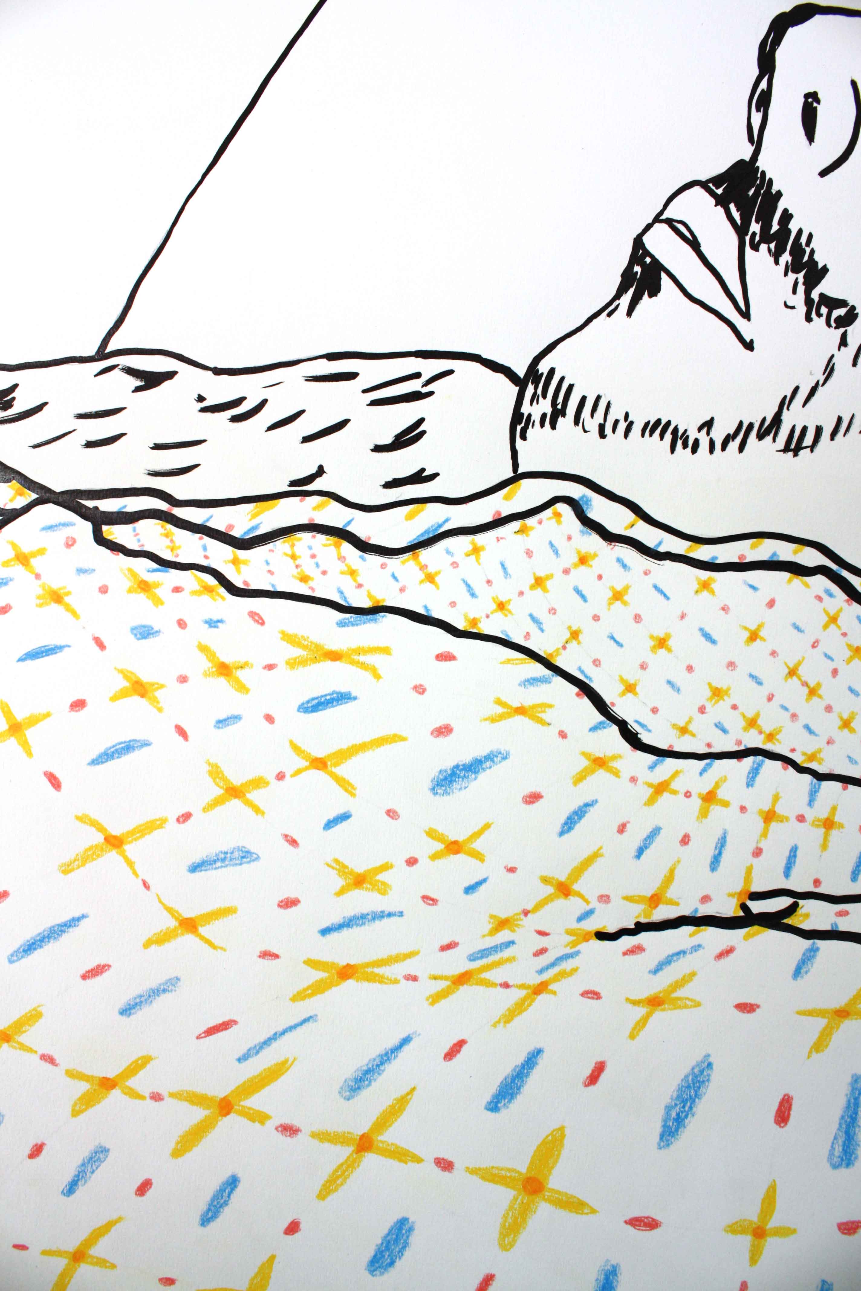 Encre de Chine et crayon de couleur sur papier épais