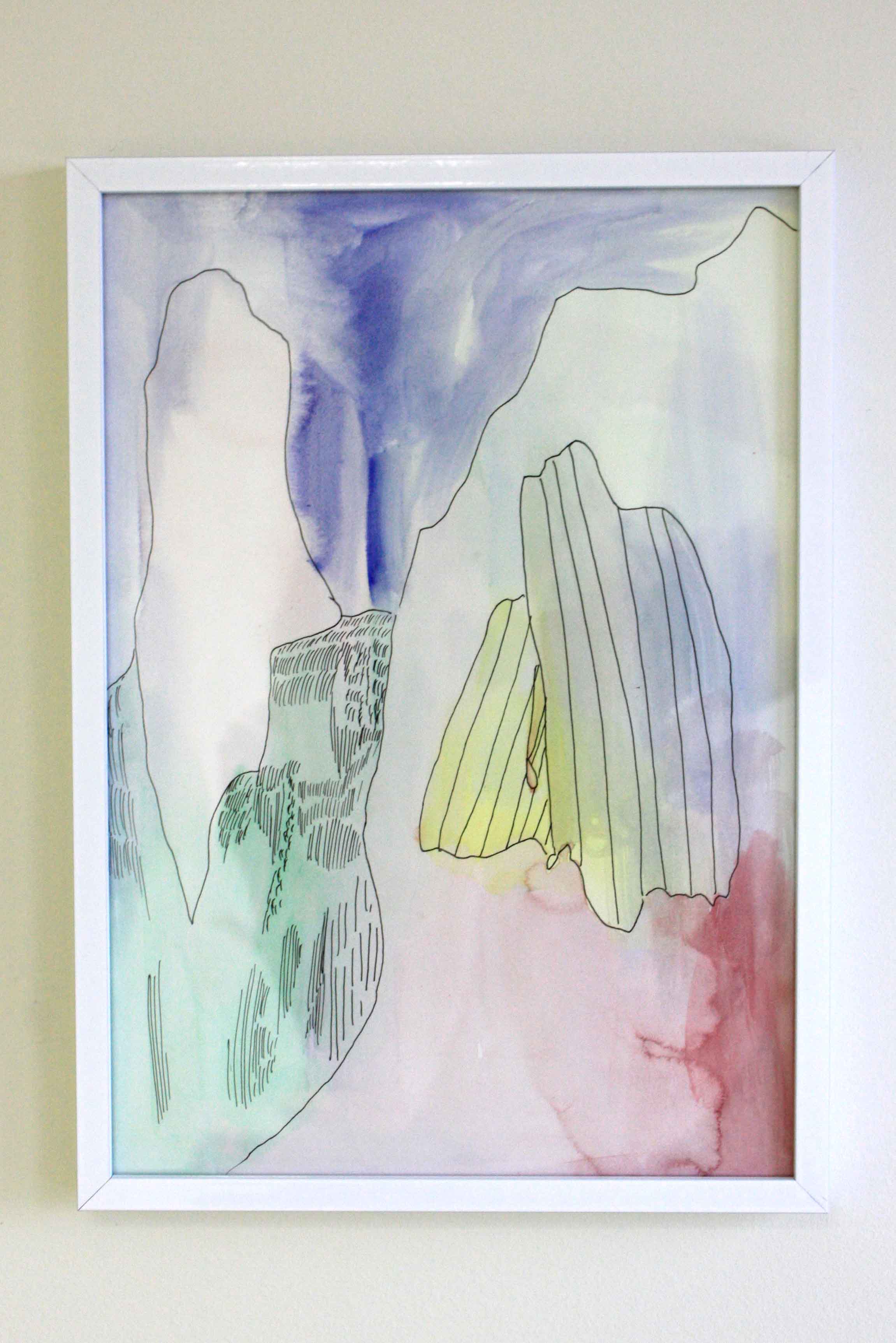 Aquarelle et stylo sur papier épais