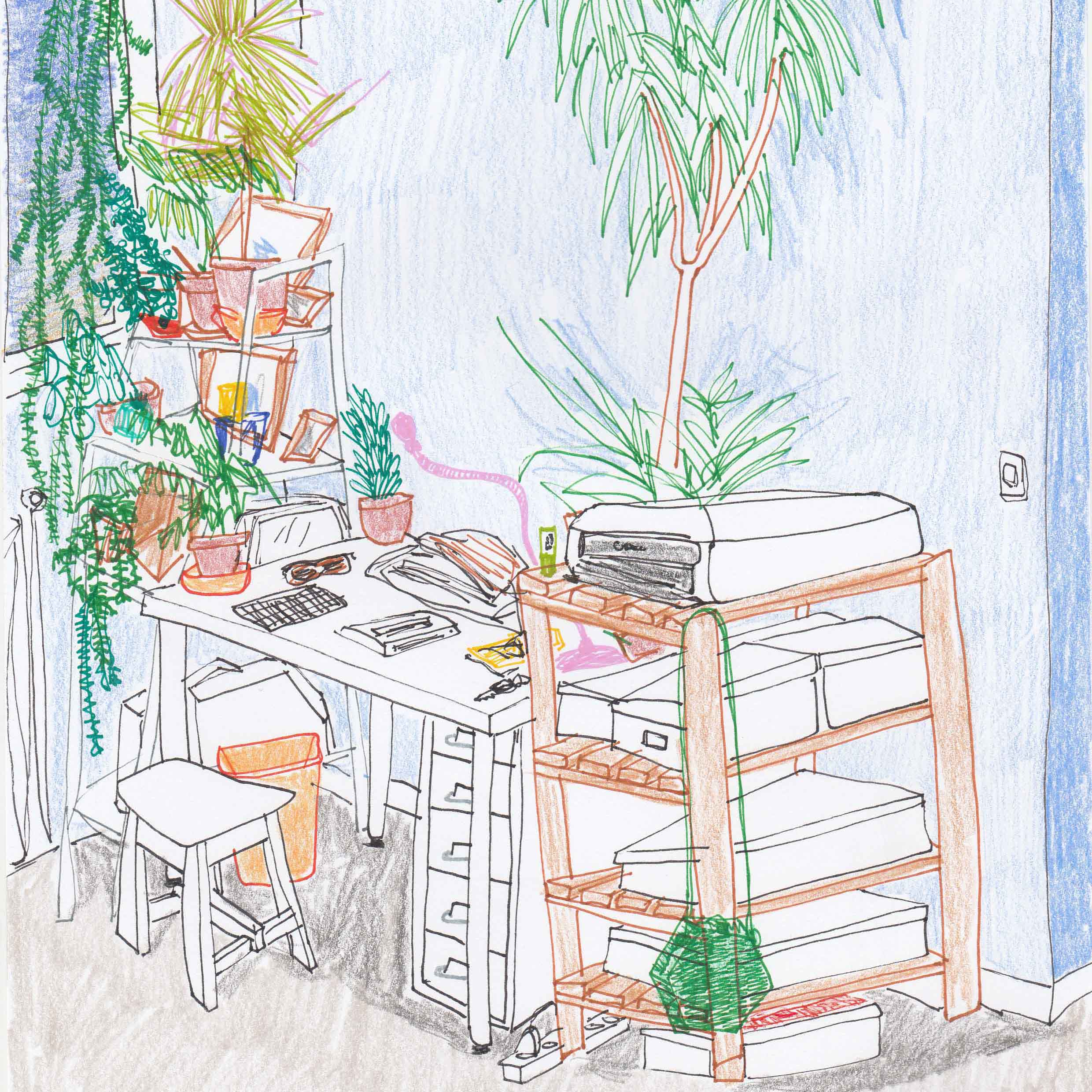Feutre et crayons de couleurs sur bristol