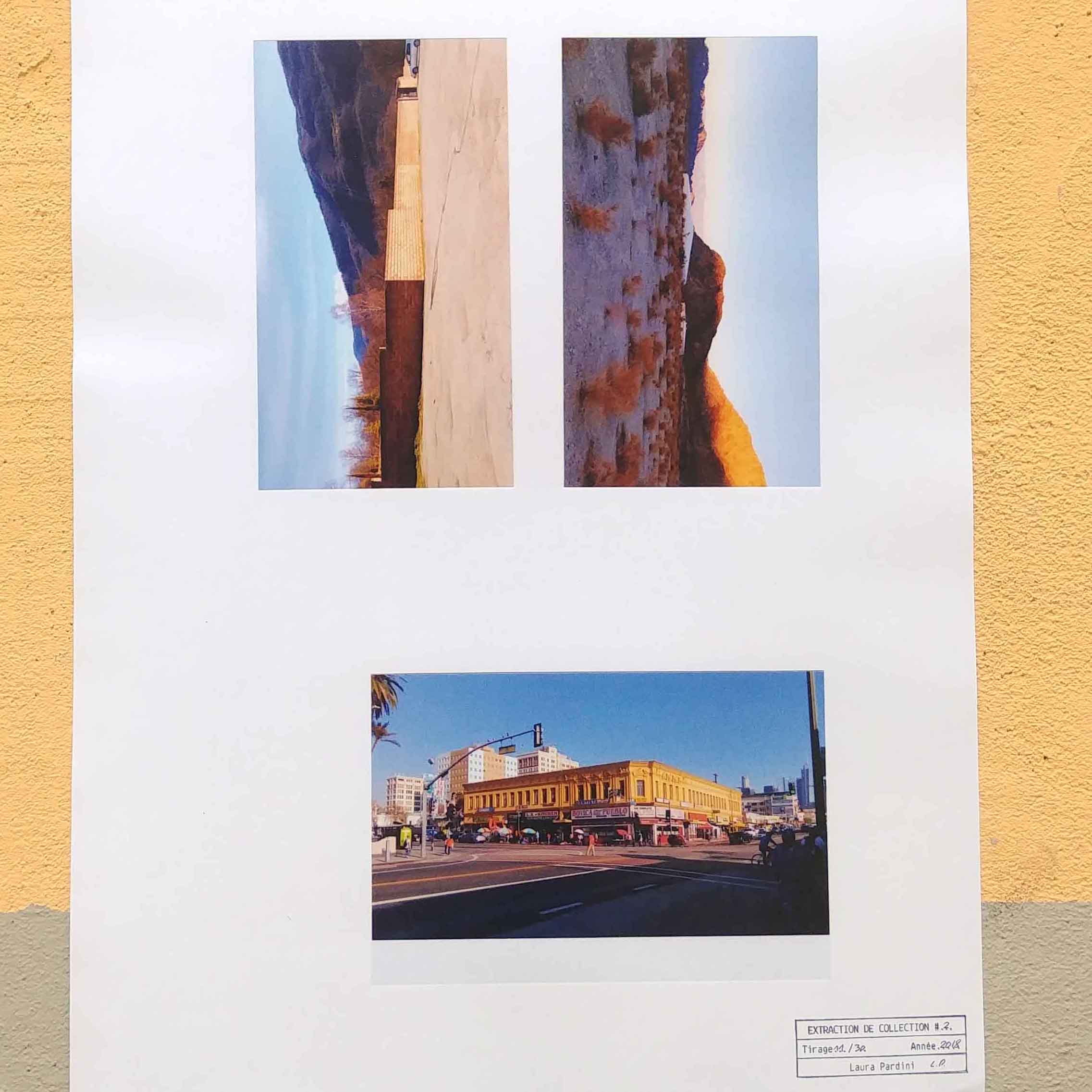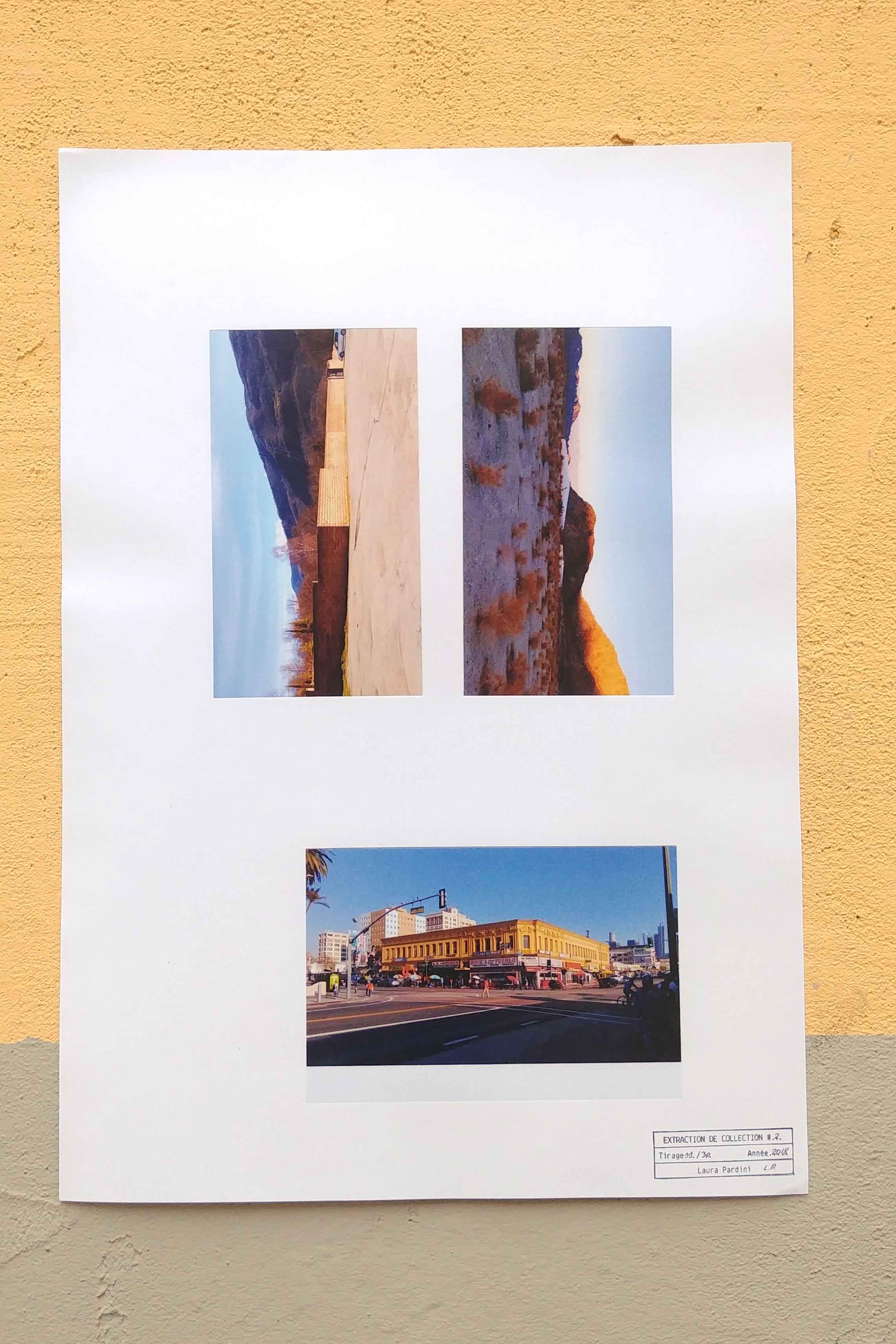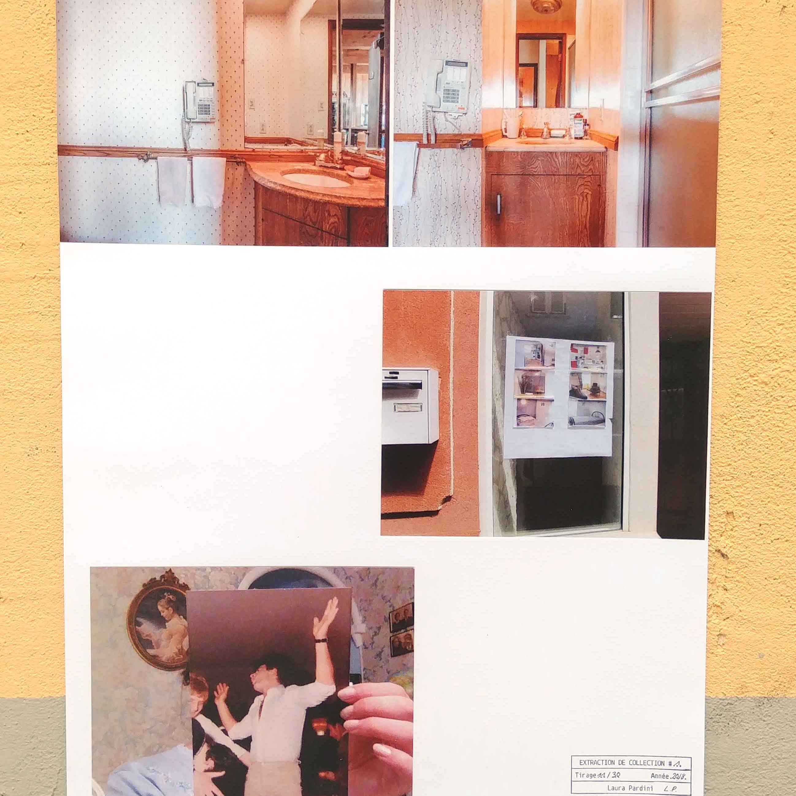Extraction de collection #1 & #2 présente des photographies scannées issues de mon répertoire d’images papiers. Prises soit grâce à un appareil photo jetable, soit numériquement puis imprimées, elles viennent alimenter un catalogue de formes, de couleurs, de compositions, de moments, de scènes. Images satellites dans mon travail, ce sont des objets préhensiles qui s’invitent de temps à autre au sein d’installations. Elles sont alors des sortes d’astérisques qui précisent et complètent.