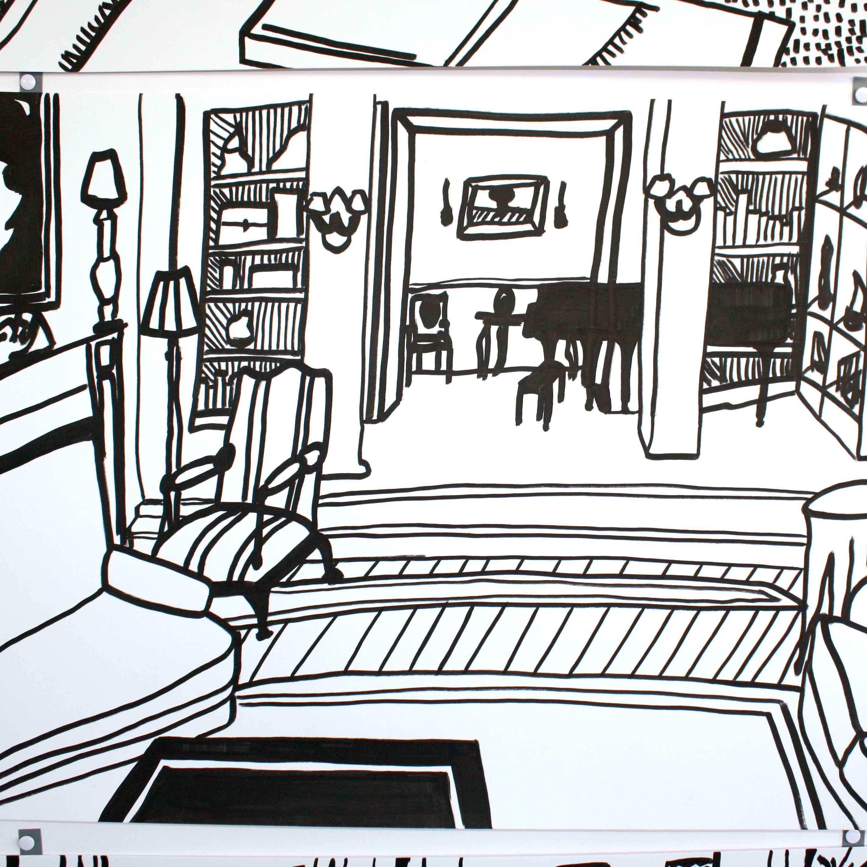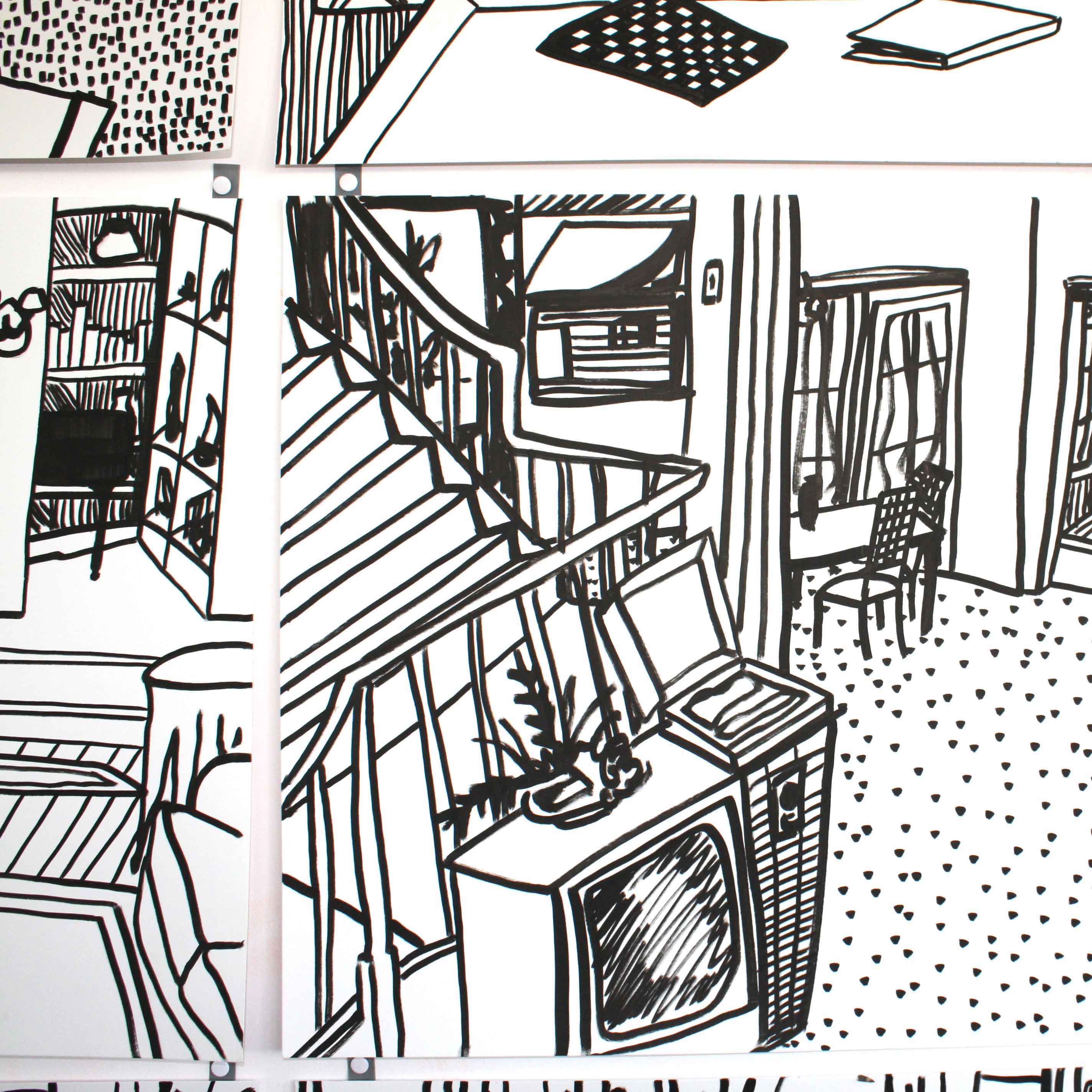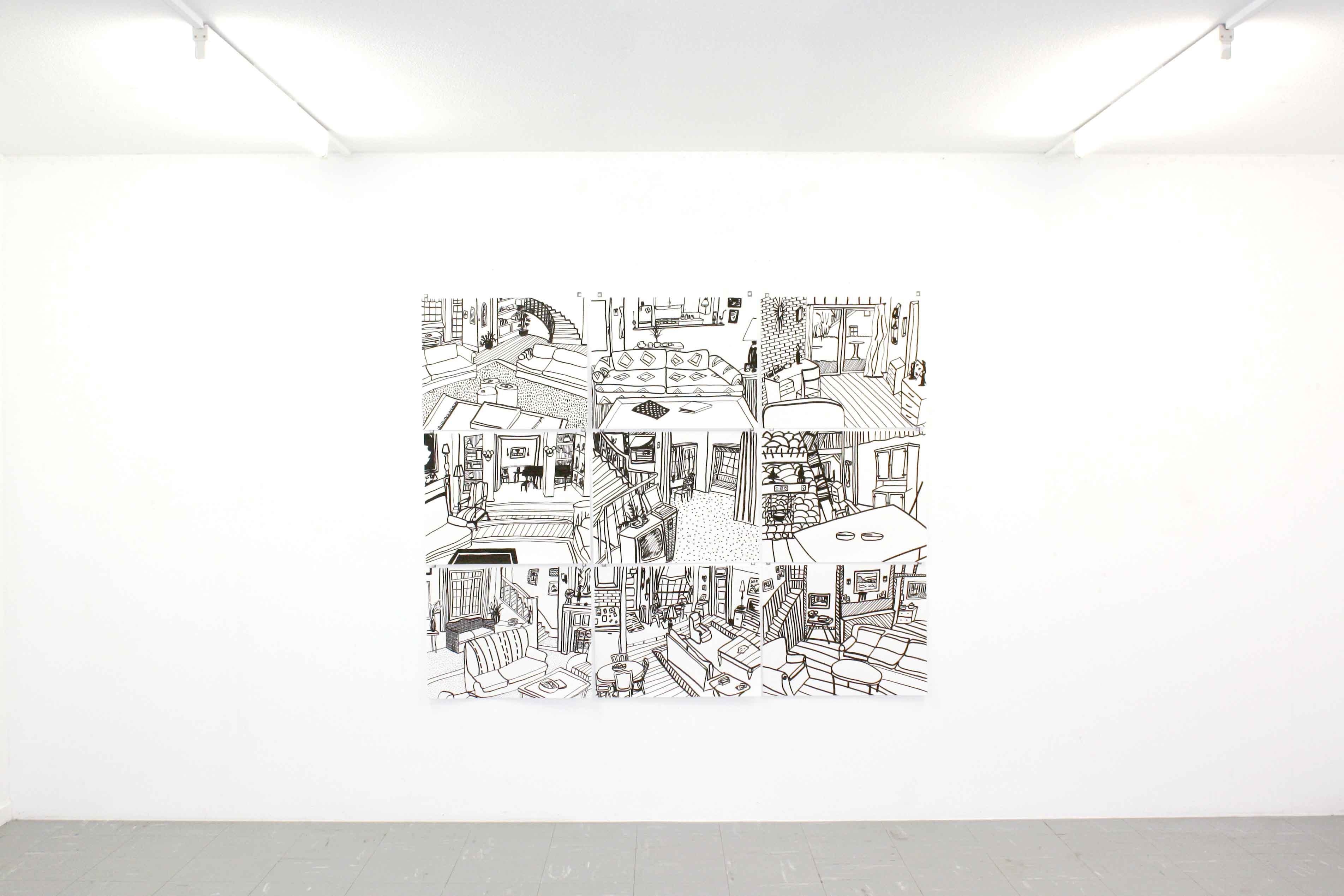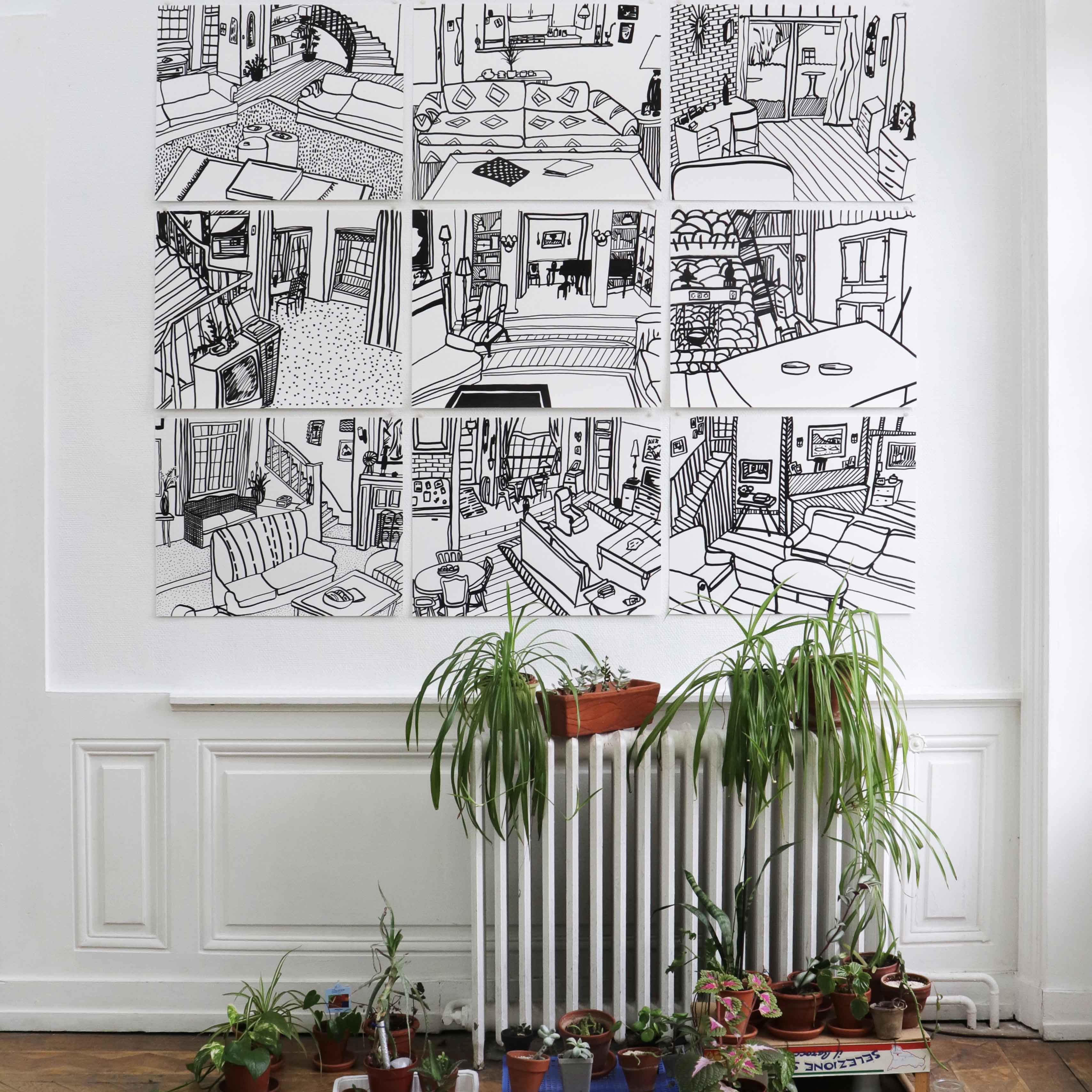 Cette série de dessins reprend des living-rooms de séries télévisées américaines datant de 1964 à 2005. Pour chacune de ces séries la caméra filme depuis un angle fixe, nous regardons ainsi la scène depuis le « quatrième mur ». Chacune de ces séries montre un noyau familial ou amical et dépeint des moments de vie au sein de leur foyer. Les séries présentes sont : Le prince de Bel-air, Scrubs, Mariés deux enfants, Une nounou d’enfer, Ma sorcière bien-aimée, La petite maison dans la prairie, Ma famille d’abord, Friends et Notre belle famille.