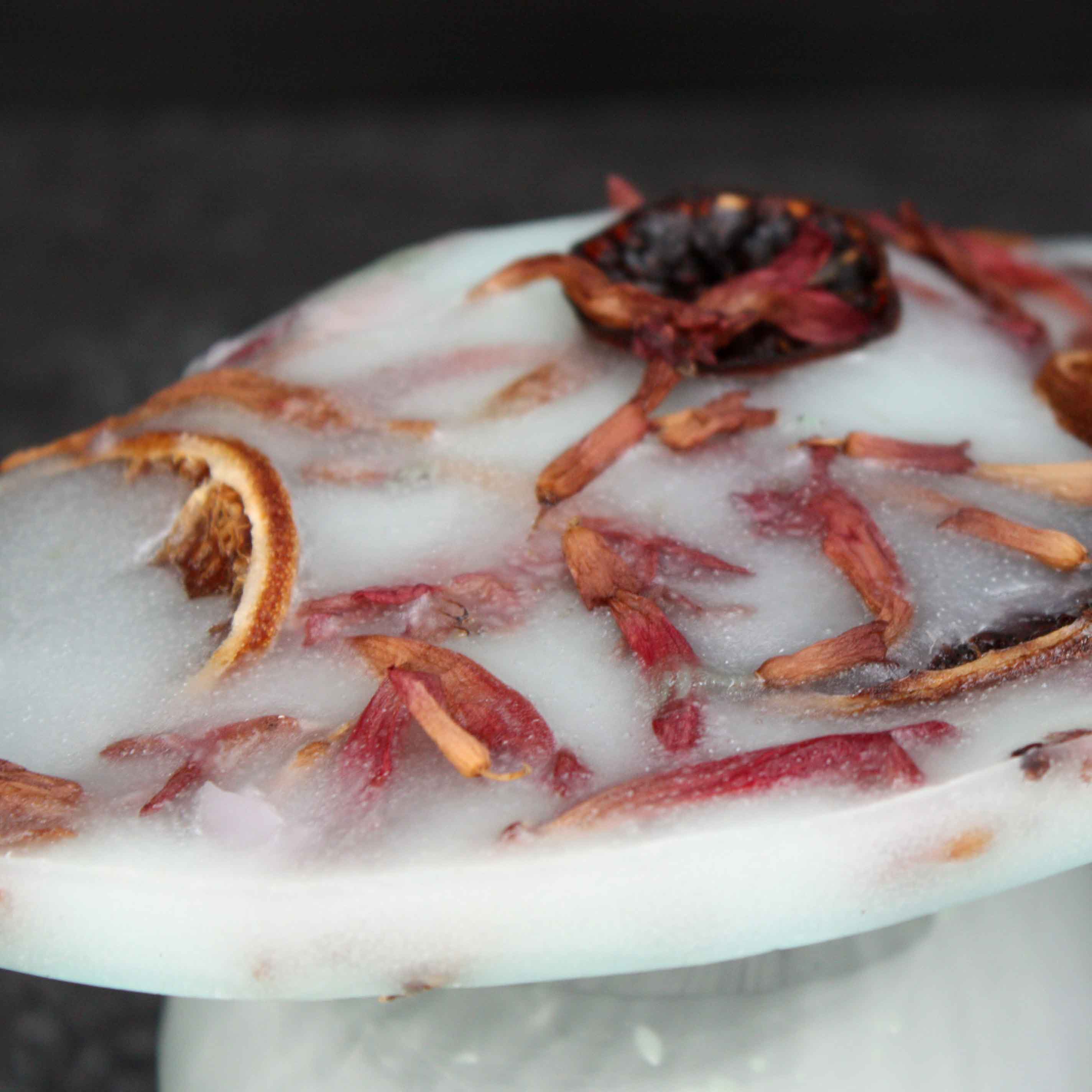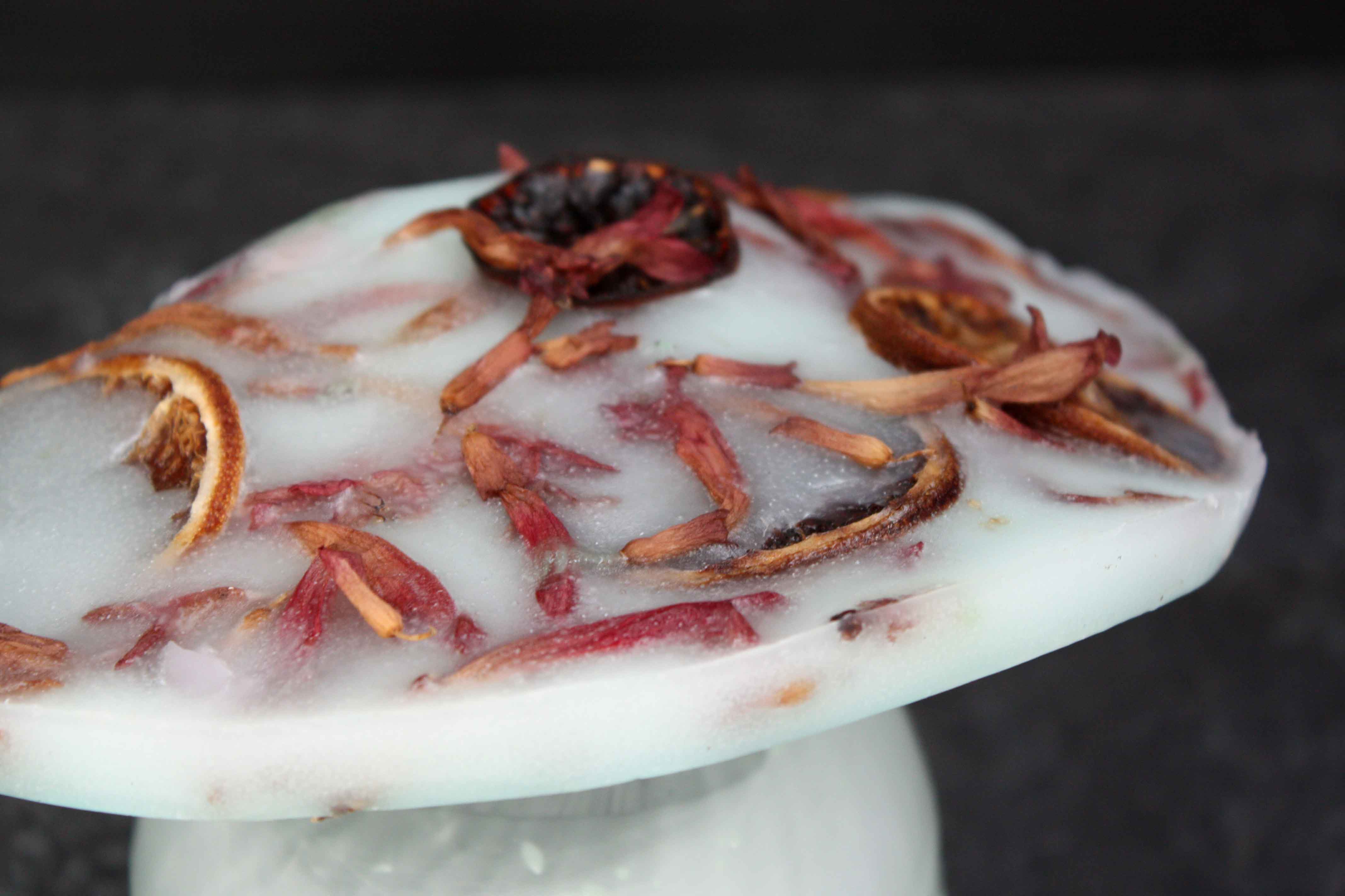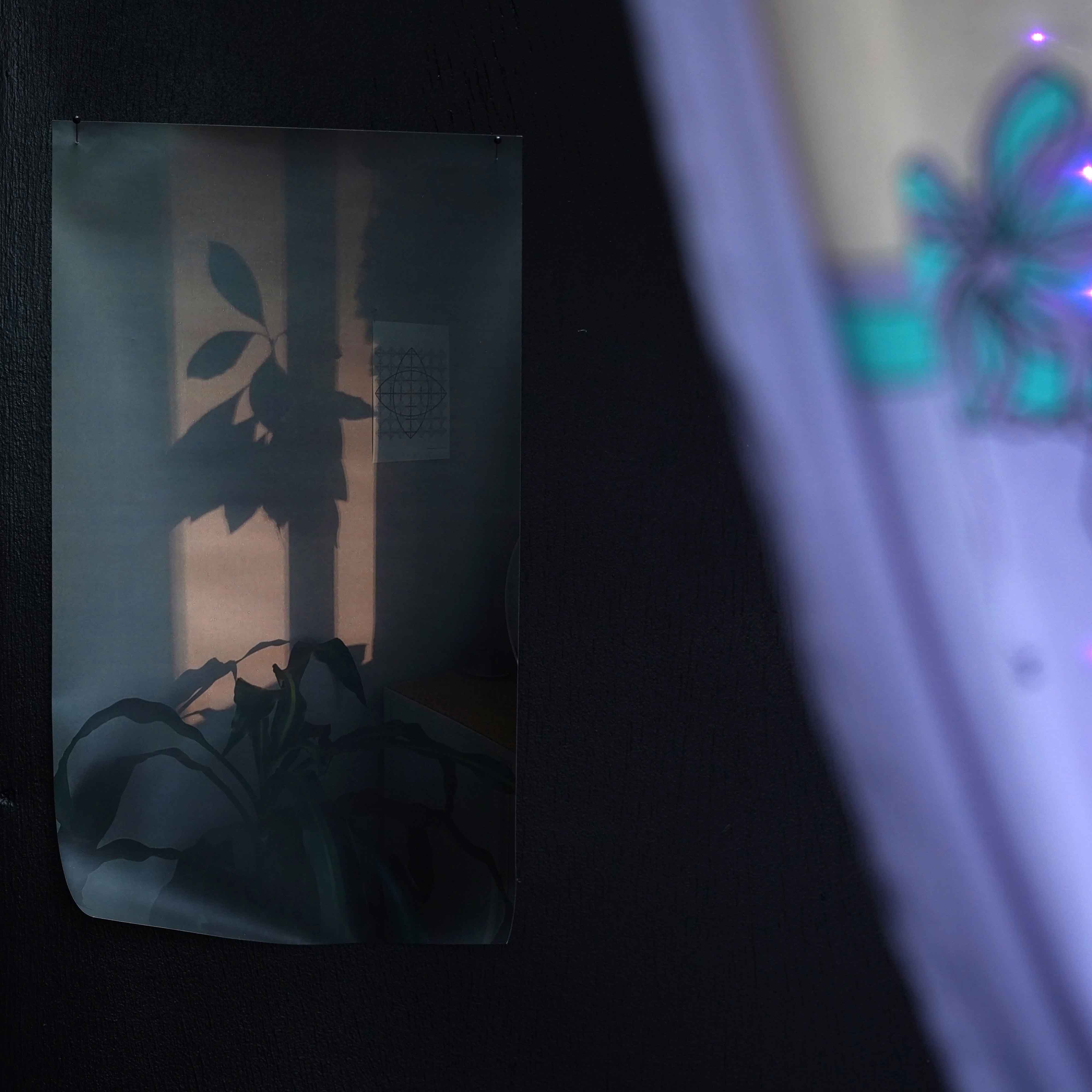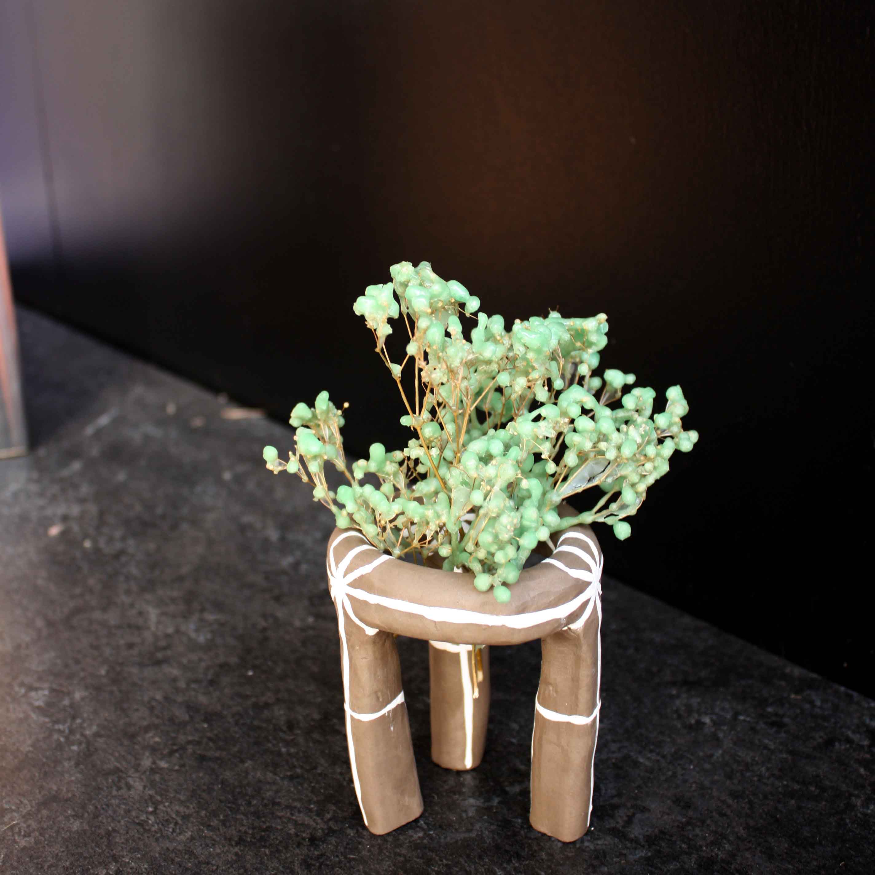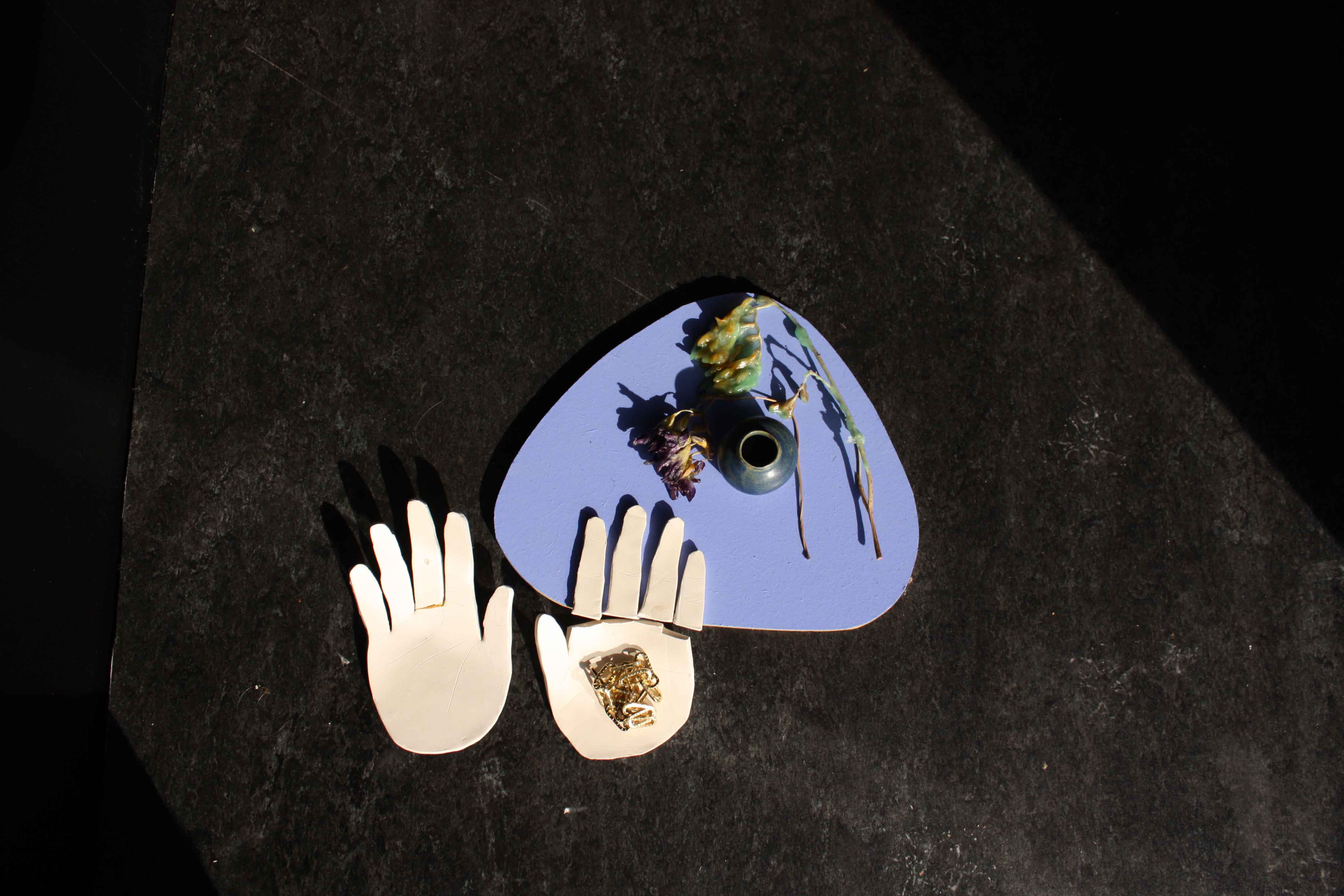 Installation dans la Nanotecture du Basculeur, fleurs cristallisées dans de la cire, peinture sur soie, drapé, guirlande, caisse en bois, et différentes compositions : « Les prieures », « Coupelles » et « Monument ».